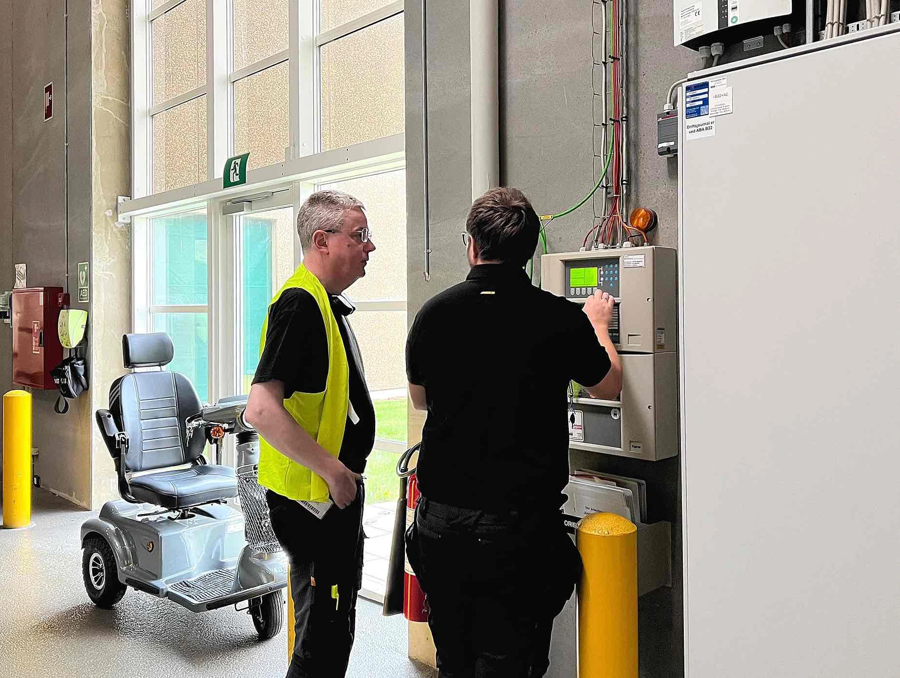 Den tekniske afdeling hos ABENA har egne elektrikere ansat, men det høje niveau af brandsikring betyder, at der er flere sikringsteknikere fra Jansson Alarm fast tilknyttet produktionen. De kender bygningen og installationerne til bunds – og det gør en forskel.